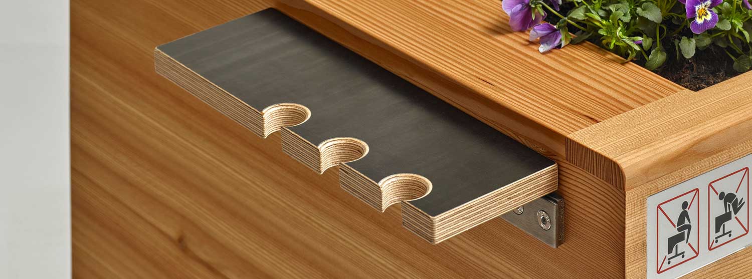 Alle Größen können mit einer extrabreiten Pflanzenwanne (bis 65 cm) ausgestattet werden. Ab Größe M wird das Design des Hochbeets angepasst: Frida verfügt dann über vier synchronisierte Hubsäulen – für eine gleichmäßige Höhenverstellung auch bei hoher Belastung.